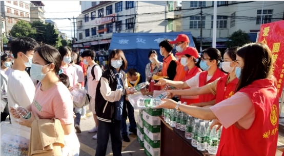 6月7日,由城步民政牵头,社会组织参与,城步民政局新时代文明实践所、方圆社工、阳光儿童服务中心、社工总站、慈善会的负责人及社工、志愿者来到城步一中考点开展“爱心助考.圆梦未来”的爱心助考活动,为参加高考的学生和工作人员递上矿泉水。