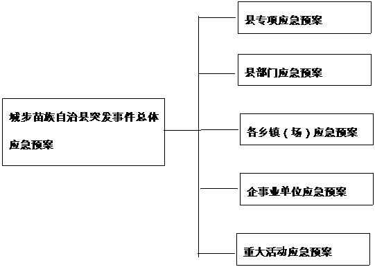 (1)县突发事件总体应急预案。《城步苗族自治县突发事件总体应急预案》(以下简称县总体应急预案)是全县应急预案体系的总纲,是县人民政府应对本县突发事件的规范性文件和行动指南,由县人民政府制定并公布施行,报市人民政府备案。