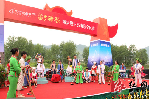 红网城步站6月16日讯(记者 刘令 通讯员 李晶)梅子雨落山歌飞。6月15日上午,中国湖南(南山)六月六山歌节之“苗乡醉歌·城步原生态山歌全民赛”在县城狮子山脚下巫水河畔开幕,来自全县各乡镇的20名歌手闪亮登场,10人进入全民赛60强。