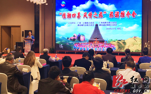 三江、龙胜、城步、通道“桂湘四县”在重庆召开旅游推介会一幕。