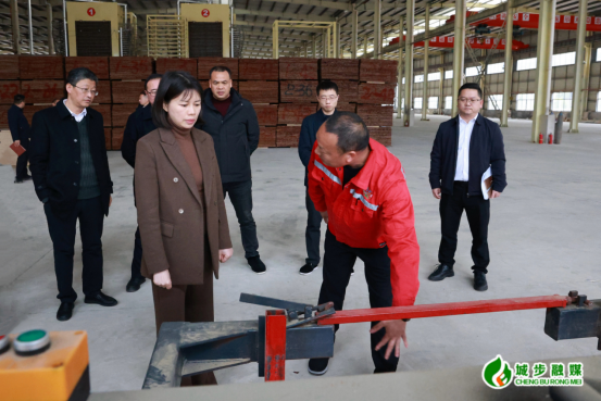 在城步青泉农林有限公司,王慧敏一行深入企业车间,实地了解企业生产线运行、竹制品产业链延伸及未来发展规划等情况。