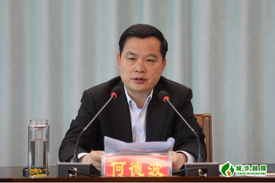 图为县委书记何德波在会上讲话