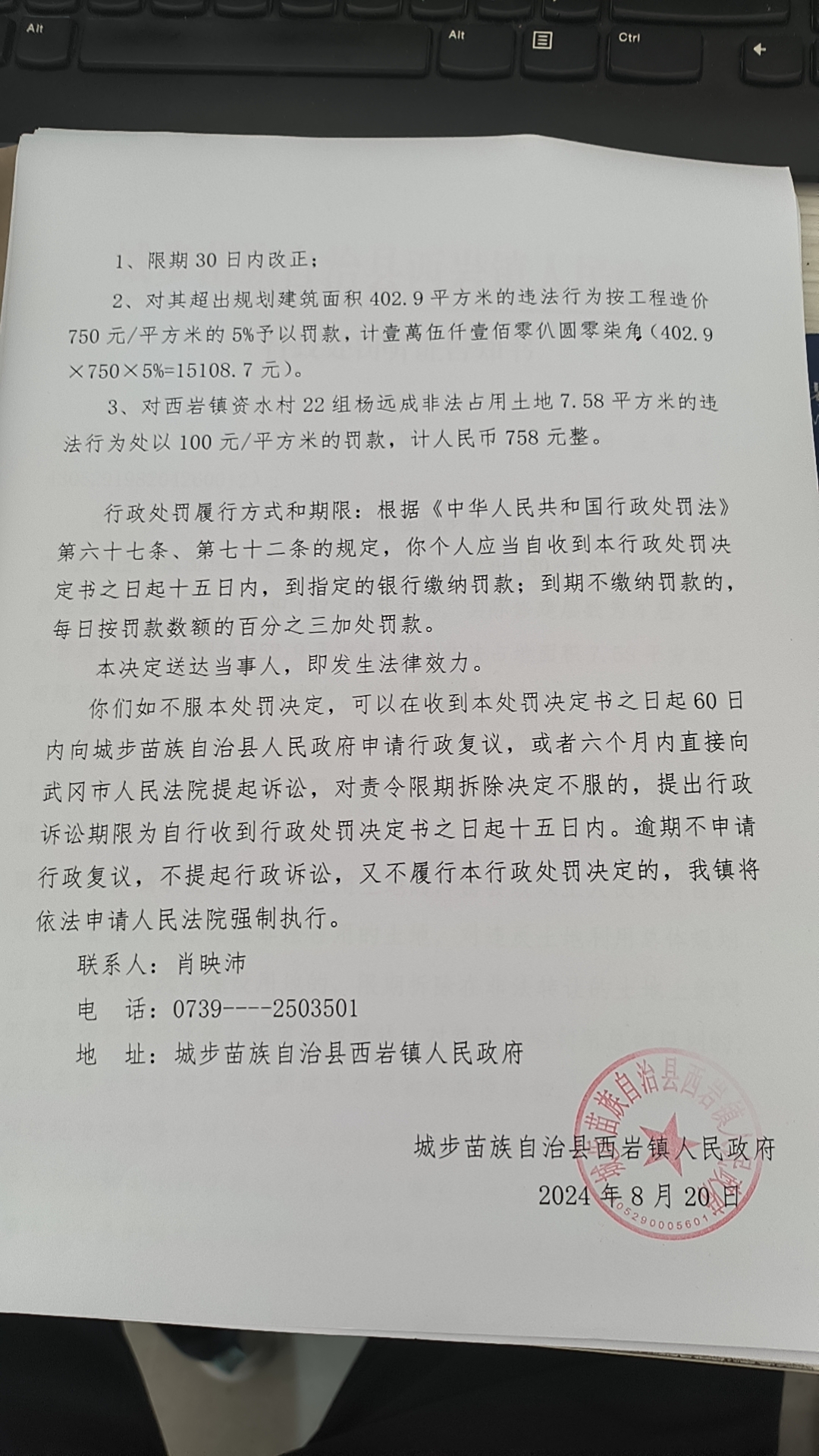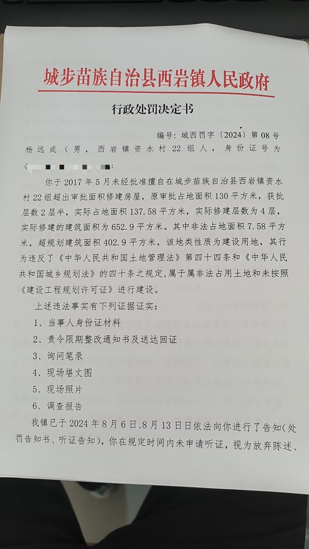 城步苗族自治县西岩镇2024年行政处罚第08号公示