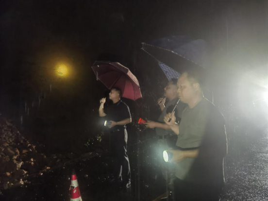 领导班子严格带头执行汛期24小时值班,同时充分发挥“三长制”联防联动作用,落实“631”预警机制,及时将最新预警信息通过值班电话、微信群、片组邻联系机制传递到各村组,确保雨情、水情、汛情信息传达精准及时,时刻绷紧防汛救灾这根弦。 雨情就是命令,夜晚23点,镇联点领导、驻村干部、村支两委干部迅速集结,奔赴各村开展防汛防灾工作,分组包片,严格执行“四个一律”硬要求,上门对切坡建房、地质灾害点等危险区域的群众进行紧急转移、妥善安置。同时对镇域内所有河道、管网、山体滑坡风险点及低洼易涝点开展实地隐患排查,全力防范化解重大灾害风险,拿出“雨中撑伞”的实际行动,当好人民群众的“撑伞人”。