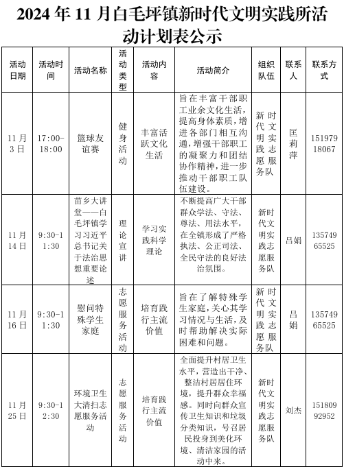 城步苗族自治县白毛坪镇新时代文明实践所(站)活动安排表(2024年11月)