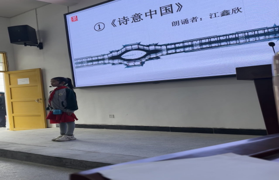 由主持⼈宣布诗歌朗诵会正式开始,并⼀⼀介绍了前来观摩的领导和⽼师及评委席的各位⽼师,比赛顺序按小学部个人组、集体组、初中部个人组、集体组分别进行,首先上场的是四乙班江鑫欣同学带来的《诗意中国》,带领我们领略了中国这个诗的国度,诗意源远流长从未断绝,中国的诗意不仅在她如画的风景里,更在生活在这片土地的每个人身上,遍布华夏的每一寸土地。