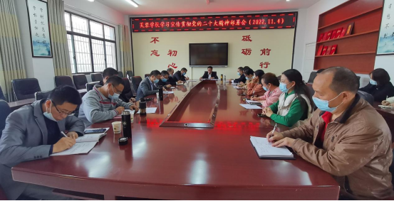 11月4日上午,城步苗族自治县芙蓉学校在会议室召开学习宣传贯彻党的二十大精神部署会。按照县教育局会议部署,结合我校工作实际,特组织召开此次会议,学校全体行政人员参加会议。党总支书记、校长刘小军同志主持并讲话。