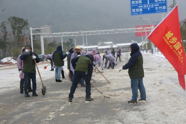 2018年12月29日至30日,我县普降大雪,路面积雪深厚、道路结冰湿滑,对群众生产生活造成了极大不便。为积极响应县委、县政府扫雪除冰行动的指导精神,1月1日元旦假期,县国土资源局干部职工放弃休息时间,在不动产登记中心服务大厅门口及高互通路段积极开展扫雪除冰行动,温暖人心。