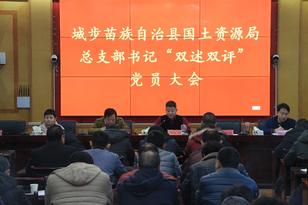 2019年1月31日国土资源局召开了“双述、双评”党员大会,党组书记局长陈曲波在党员大会上说阐述抓党建是各级党组织的首要之责、根本之责。要针对“缺项”抓补课,针对短板”抓提高,针对“软肋”抓固本,一个问题一个问题地解决,一步一个脚印地推进,最后强调,“双述双评”会议是一次相互学习、交流借鉴、共同提高的会议,也是一次展示成效、查找不足、促进工作的会议。通过党建+特色载体、党建+帮带融合等方式,力争2019年创成县级党建示范局。