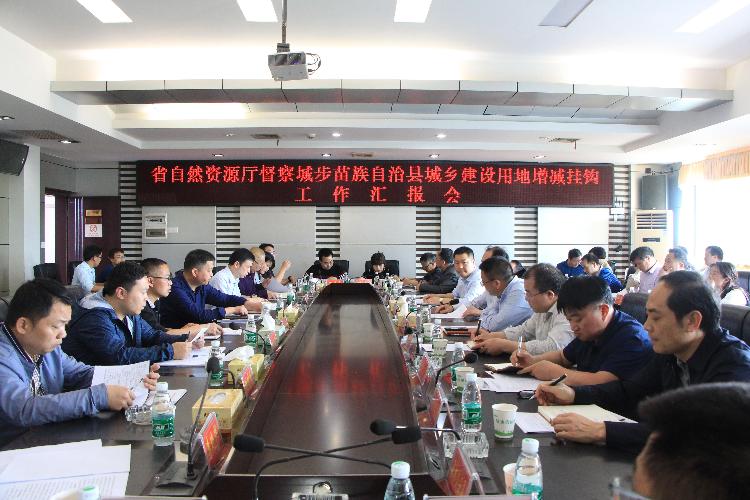 4月8日,省自然资源厅督察三处处长佘建华、副处长谭译林、李红兵、孙清宇,市自然资源和规划局党组成员、副局长李茂席一行深入我县开展为期12天的城乡建设用地增减挂钩督察指导工作,当天在县政府多媒体会议室召开省自然资源厅督察城步苗族自治县城乡建设用地增减挂钩工作汇报会,县委副书记、县长杨博理、副县长李宪、李海军等出席会议。