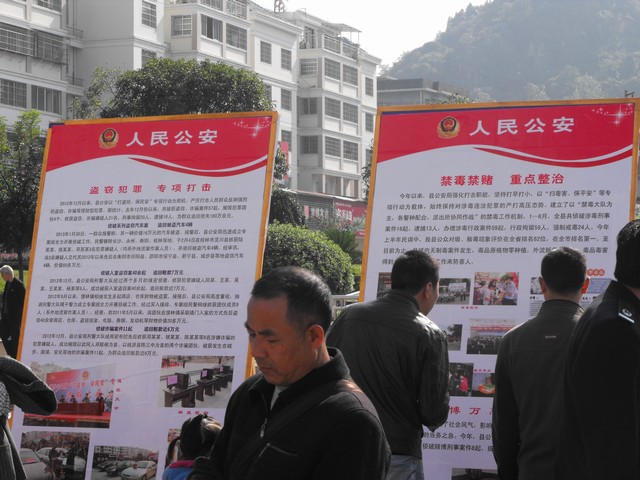 此次宣传主要以陈列展板与发放资料的形式进行,图文并茂,通俗易懂。公安展板对城步公安的概况进行了介绍,并用“除恶安民,百姓称快” 、“盗窃犯罪,专项打击”、“禁毒禁赌,重点整治”三个板块对今年的公安工作和打击成果进行展示宣传,公安宣传资料则以指引群众办事流程、防盗抢为主,并对各公安基层单位的报警和办事电话以集中、便携的小册子形式进行发放。