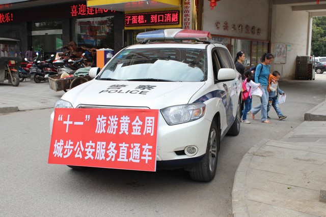 为更好地排除消防隐患、整治县城及周边交通秩序、宣传窗口单位国庆不休假等服务便民措施,城步公安局由黄家利副局长带队自国庆前夕起贯穿整个国庆假期以宣传、检查为手段,以便民直通车为形式,深入乡镇、社区、主要街道,成为城步国庆街头的一道亮眼风景。