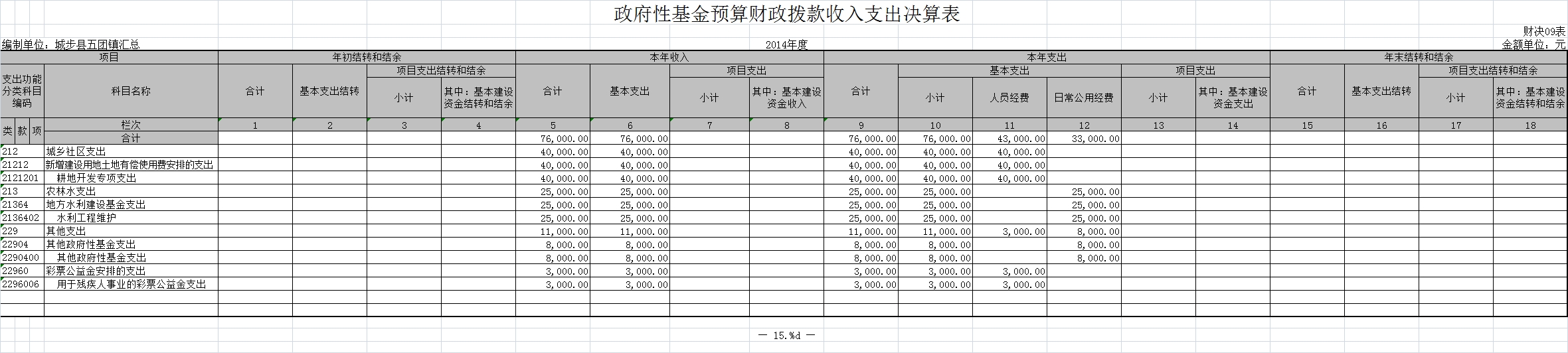 五团镇2014政府性基金预算财政拨款收入支出决算表