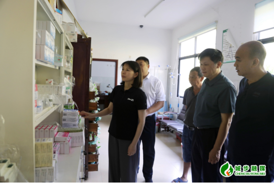 图为县委副书记、县长王慧敏在村卫生室了解药品配备情况