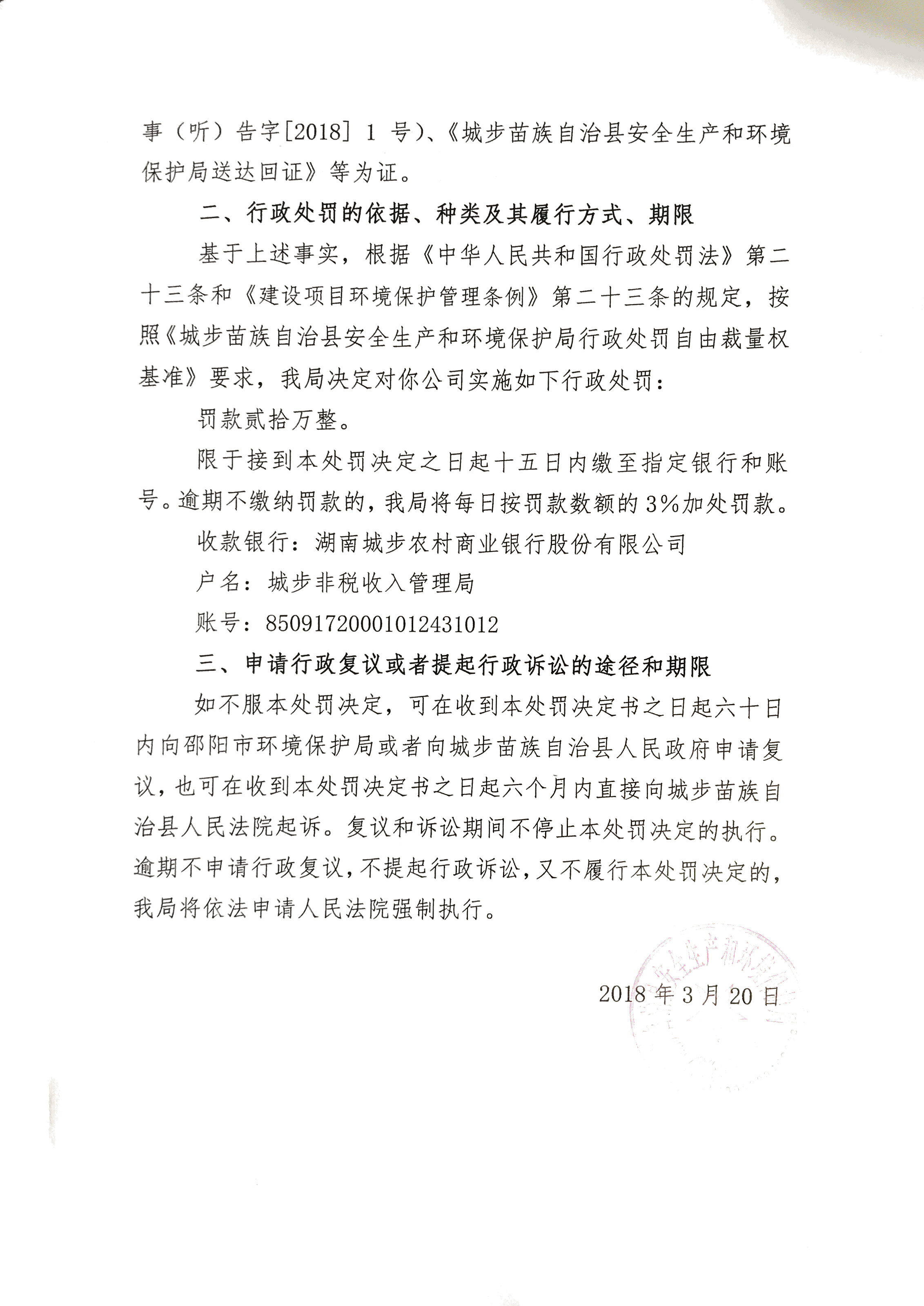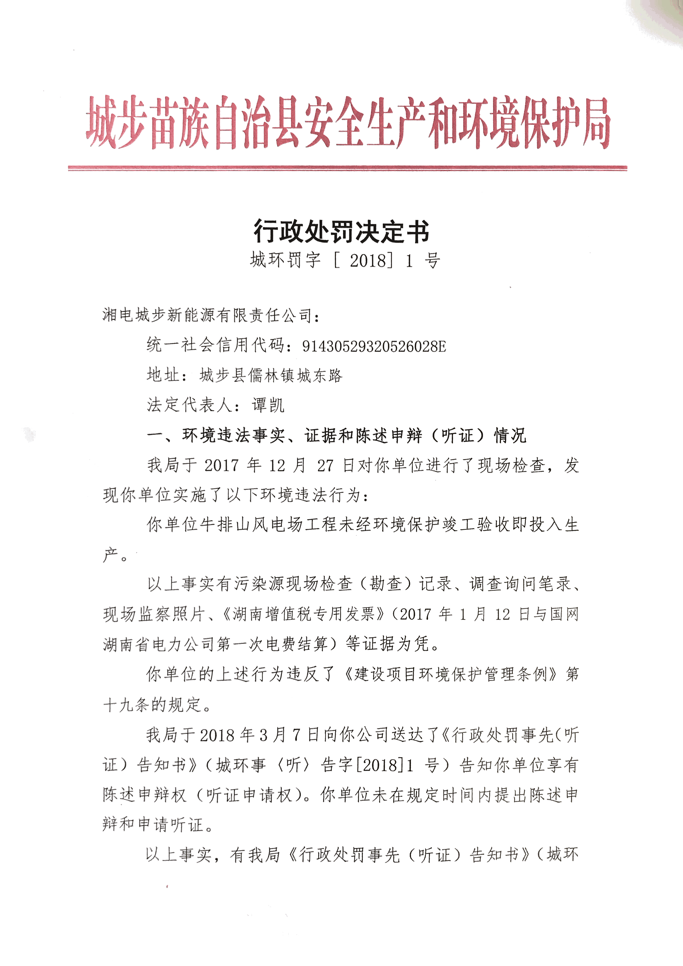 行政处罚决定书(城环罚字﹝2018﹞1号)