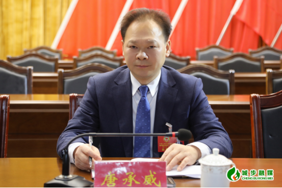 图为县政协党组书记、主席唐承威宣布政协会临时党组成员名单