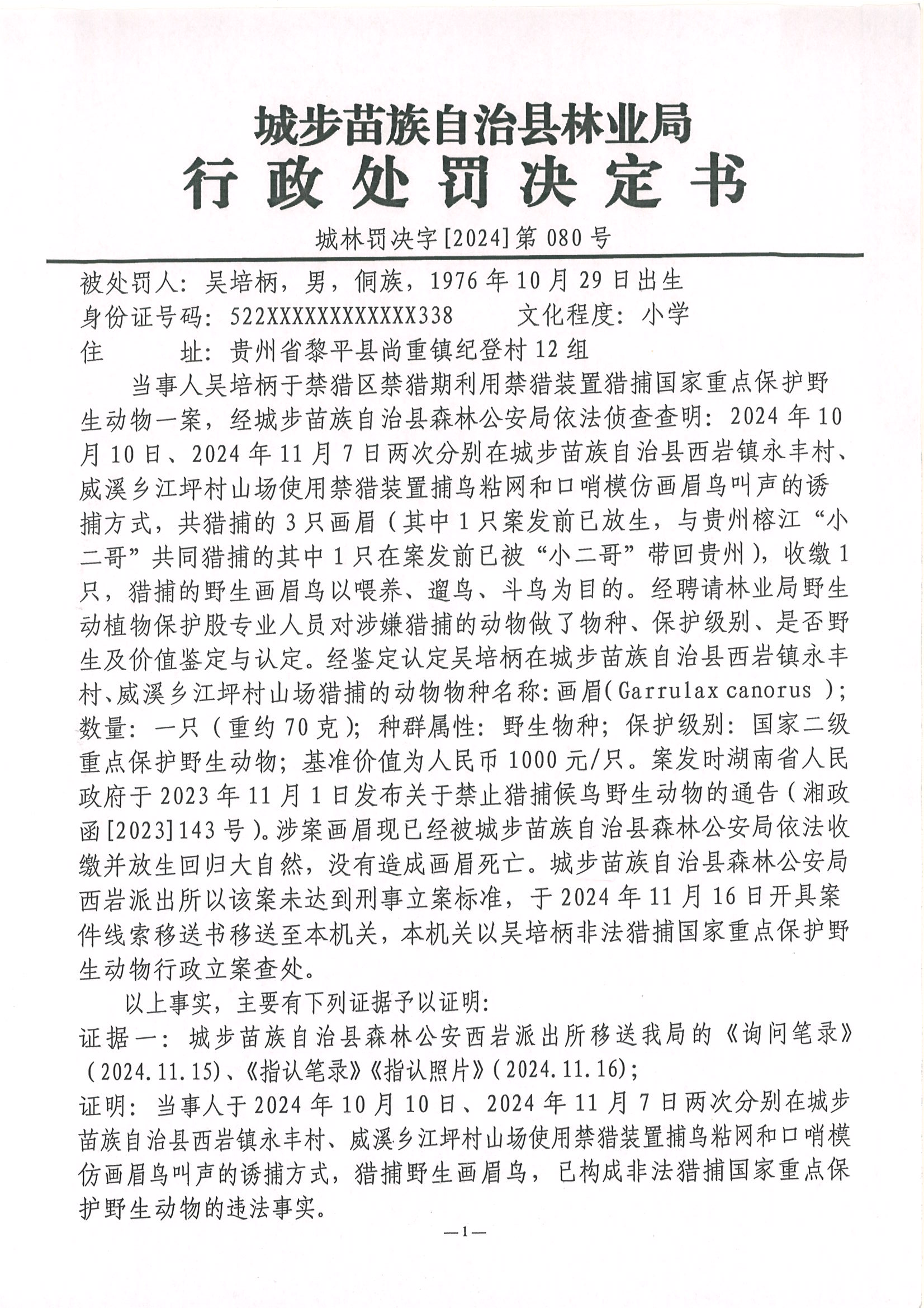 城林罚决字〔2024〕第80号