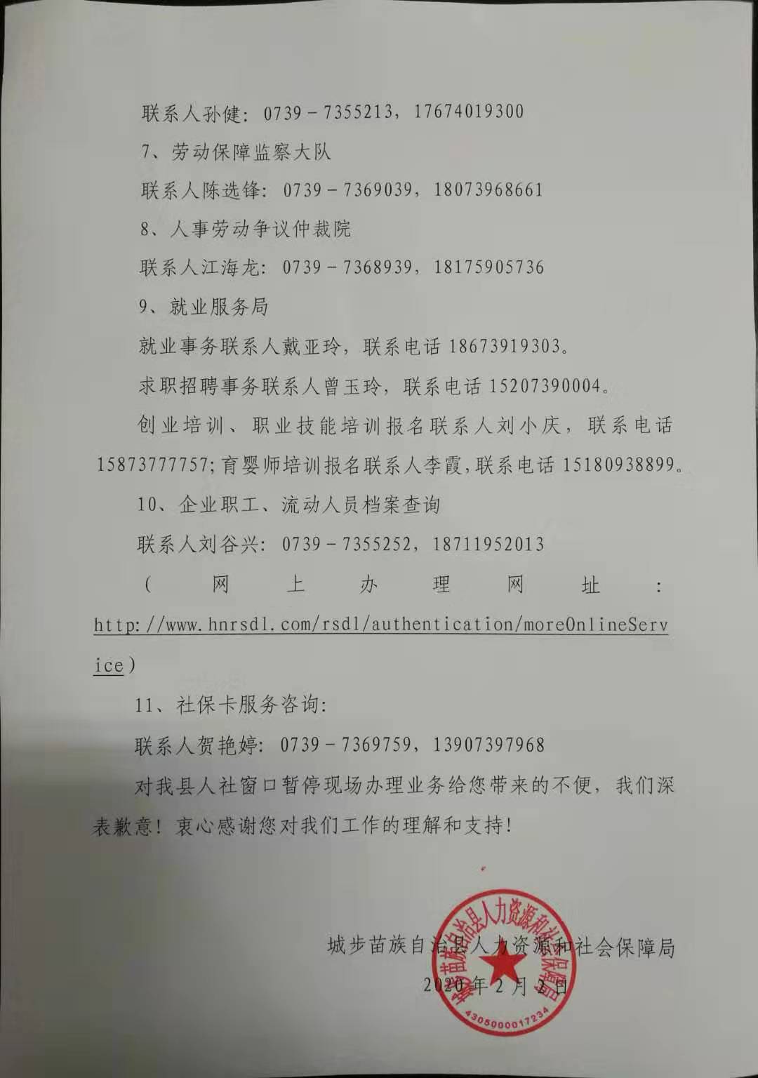 2020.2.2城步:关于疫情防控时期暂停人社服务大厅现场业务办理的公告3