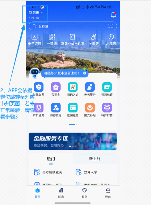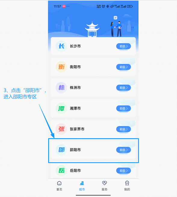 (2)打开湘易办APP,进入邵阳市专区申报页面,操作如下: