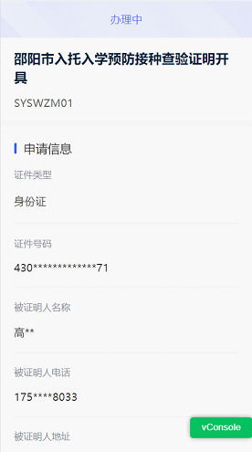 学生家长通过“湘易办”邵阳专区在线申请开具“预防接种证查验证明”,受理单位收到申请后,通过省免疫规划信息系统查验预防接种记录。符合开具要求的,在“湘易办”邵阳专区后端综合管理平台开具“预防接种证查验证明”,学生家长可通过“湘易办”在线预览、下载PDF文件;不符合开具要求的人员,不予开具线上证明,系统自动提示群众进行相应操作。(具体流程见附件)