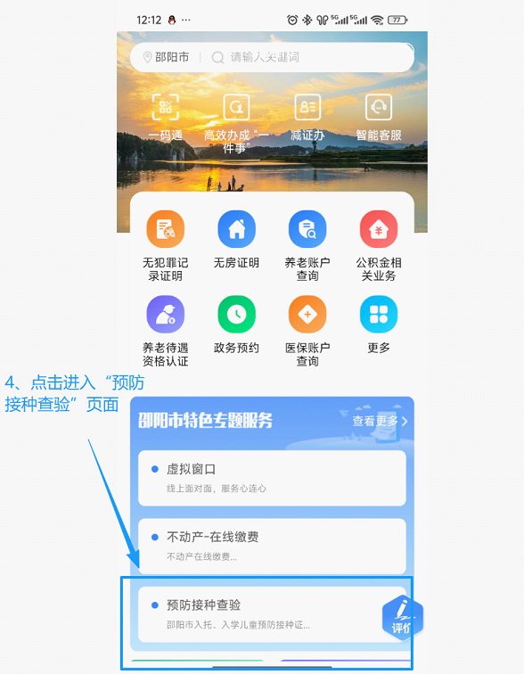 为进一步优化办事流程,切实解决传统纸质查验证明开具流程繁琐、群众多跑腿等问题,2024年8月,我市在“湘易办”邵阳专区上线预防接种查验服务,取得较好成效。为进一步提升服务质效,现决定在全市范围内继续推行预防接种证查验证明线上办理服务,现将相关工作通知如下:
