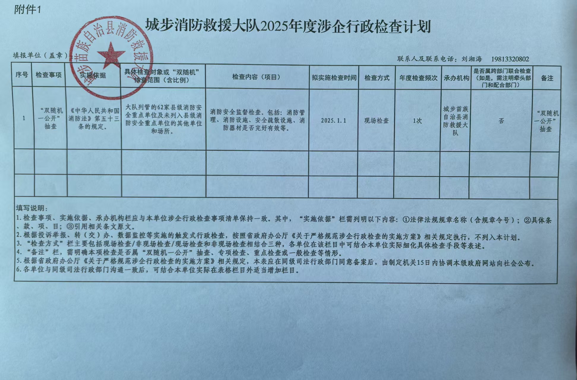城步苗族自治县消防救援大队2025年度涉企行政检查计划