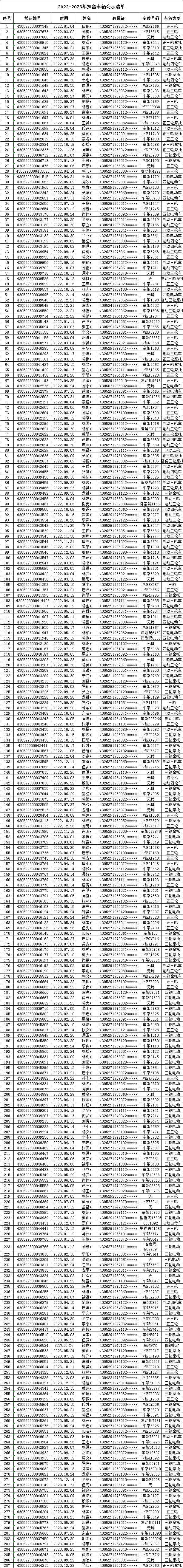 2022-2023年扣留车辆名单(正三轮摩托车,四轮摩托车)