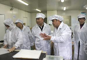 九鼎农业是一家立足我县延季蔬菜产业,集农产品加工和物流于一体的农业产业化龙头企业。在九鼎农业,罗建南进入刚投入使用的大型冷库中查看,对公司基础设施建设给予了充分肯定。他要求,公司要做好可流通环节的经营,为我县延季蔬菜产业服好务;要把6月启动的南山矿泉水生产作为重中之重的工作来做,利用本地优秀资源和良好品牌效应,搞好营销,做强做大。