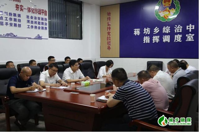 图为县委书记余勋伟一行在蒋坊乡政府了解乡镇为基层减负、粮食安全、乡村振兴等工作