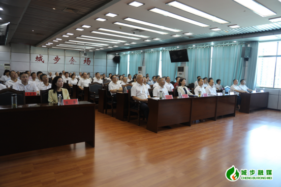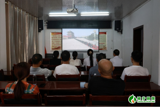 图为在职县领导及县委办、县政府办全体工作人员集体收看纪念大会和阅兵仪式