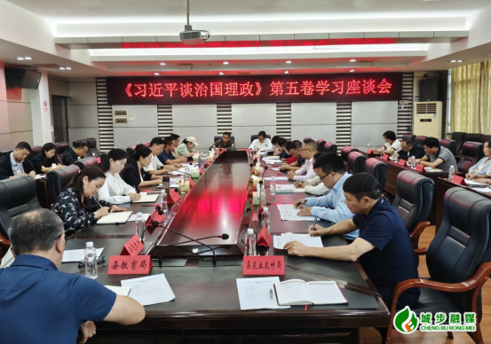 城步新闻网10月16日讯(记者 毛学军 见习记者 谢纪能)10月16日,城步在县政府多媒体会议室召开《习近平谈治国理政》第五卷学习座谈会,深入学习贯彻习近平新时代中国特色社会主义思想,交流学习体会。县委常委、宣传部部长陈芳出席并讲话,相关职能部门主要负责人参加。