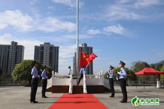 上午9时8分,仪式正式拉开帷幕。旗手们目光坚毅,迈着铿锵有力的步伐,护卫着五星红旗迈向升旗台。在激昂雄壮的国歌声中,鲜艳的五星红旗缓缓升起,全体人员庄严肃立,齐声高唱国歌,目光专注地向国旗行注目礼,向伟大祖国表达最崇高的敬意。