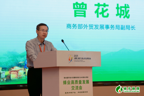 曾花城指出,城步苗族自治县的蜂业发展,是“绿水青山就是金山银山”理念的生动实践,在商务部多年持续帮扶下,这条集养殖、加工、包装、销售于一体的产业链,已带动4000多人实现就业,更获评全球最佳减贫案例,成为乡村振兴的有力支撑。作为对外贸易促进机构,商务部外贸发展事务局将在强化品牌赋能、推动产业升级、搭建对接桥梁上持续发力,共促城步蜂业高质量发展。