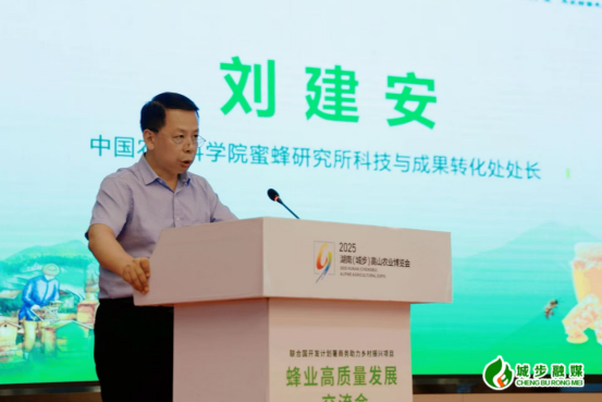 图为中国农业科学院蜜蜂研究所科技与成果转化处处长刘建安在会上讲话