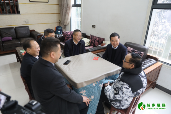 图为县委书记何德波一行走访慰问老干部殷汝才