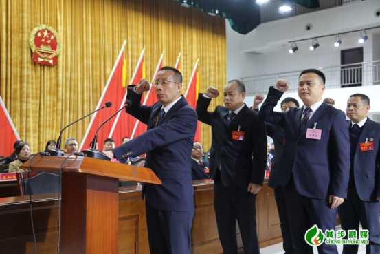 上午9时,大会举行第二次全体会议,通过了本次会议选举总监票人、监票人名单(草案),经过投票,选举产生了县十八届人大常委会副主任、县人民政府副县长,何德波宣布选举结果,全场以热烈的掌声向他们满票当选表示热烈的祝贺。会议表决通过了县人大专门委员会主任委员、副主任委员名单(草案)。在全体代表和与会人员共同见证下,新当选的国家机关工作人员集体向宪法宣誓。