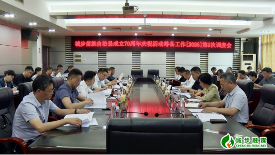 城步新闻网4月11日讯(记者 刘婕)4月10日,城步苗族自治县成立70周年庆祝活动筹备工作2026年第2次调度会在县多媒体会议室召开。县委副书记、县委统战部部长陈立发主持会议并讲话。县领导唐承威、刘玮、陈芳、蒲仕松、唐国、周祖德、杨辉刚、周小毛、肖勇、杨秀英、丁文锋、唐勤阳以及筹委会各组(室)相关单位负责人和县直相关单位负责人参加。
