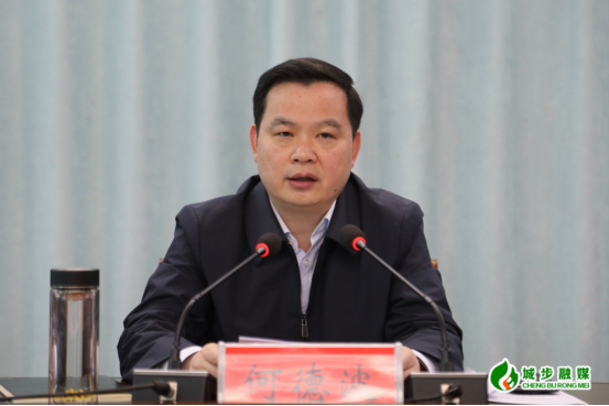 图为县委书记何德波在会上讲话