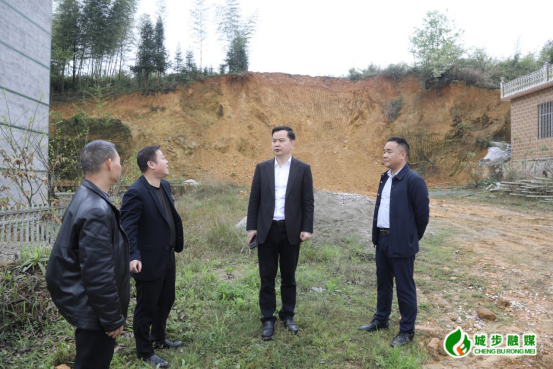图为县委书记何德波一行在切坡建房点调研督导