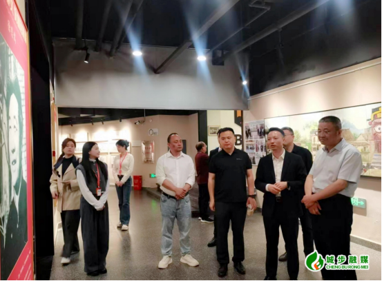 图为李宪(右一)一行在山枫美育素质教育基地调研