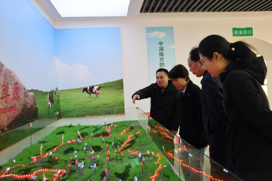 图为李淑新一行在南山牧业有限公司调研