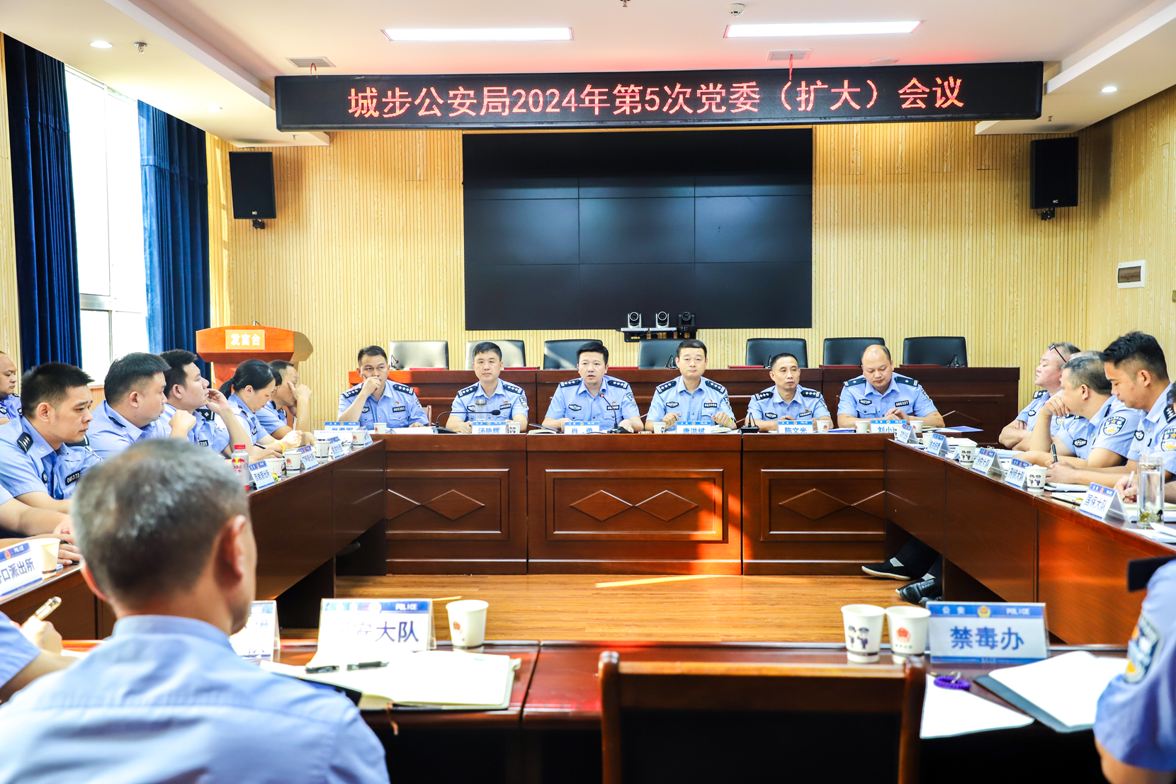 会议要求,坚决学习贯彻系列会议精神。要始终牢记“公安姓党”的根本政治属性,把党的绝对领导贯彻到政治、思想、组织各方面,落实到决策、执行、监督各环节;要坚持领导带头、示范引领,采取党委理论中心组学习、基层宣讲、专题培训等形式,组织全警原原本本学、融会贯通学、联系实际学,确保学深学透、入脑入心。要深入研究谋划推进新征程公安工作的具体举措,切实把学习贯彻成果转化为奋力推进城步公安工作现代化的生动实践。坚决防范重大风险。坚定不移贯彻总体国家安全观,围绕中心、服务大局,充分发挥公安机关平安建设主力军作用,统筹推进高质量发展和高水平安全协同共进,全方位健全完善捍卫政治安全体系、维护社会稳定体系、公共安全治理体系、服务高质量发展体系;紧盯人、事、物,全警动员、全力以赴做好安保维稳各项工作,确保全县政治社会大局持续平安稳定。坚决打击违法犯罪。统筹推进夏季治安打击整治行动和平安建设考评工作,严打快处多发案件,依法及时查办小事小案,努力让人民群众在每一次接处警、每一起案件办理、每一个办案环节都能感受到公平正义。以夏季治安打击整治行动为抓手,加大矛盾纠纷排查化解力度,重拳打击群众反映强烈的突出违法犯罪,坚决守护好人民群众生命财产安全。坚决扛牢职责使命。强化认识,结合城步县情,分析研判公共安全面临的形势,抓好源头防范、隐患排查,坚持问题导向,靶向施策、精准发力,大力推进公共安全隐患“清仓见底”。坚决服务中心大局。锚定“三高四新”美好蓝图,紧扣高质量发展大局,全过程参与,全方位融入,推行保护知识产权驻企工作站、线上线下警务服务站,项目警官制,开展警保联动工作,整合共享政务数据。坚决深化改革创新。围绕构建“专业+机制+大数据”新型警务运行模式,加快构建符合新时代要求、体现实战化特点、符合城步实际的现代警务体系。同步推进“五个专项”,发挥考评“风向标”“指挥棒”作用,激发全警干事创业、创先争优热情,集中力量攻坚,努力为推进公安工作现代化提供坚实保障支撑。坚决从严管党治警。牢牢把握新时代党的建警治警方针,锚定“四个铁一般”标准,加快公安队伍革命化正规化专业化职业化建设,不断增强公安队伍的凝聚力、向心力、战斗力,确保绝对忠诚、绝对纯洁、绝对可靠。