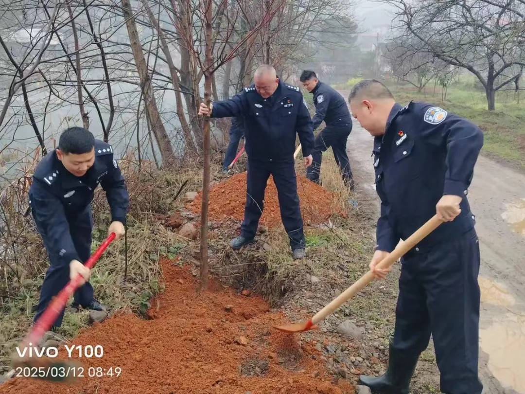 春回大地万物苏,植树添绿正当时。在县委县政府的统一部署下,3月12日上午,城步公安局组织局机关、森林公安、交警等20名民警辅警前往白廖洲村植树点参加2025年“3·12”植树节义务植树活动,为建设生态城步再填新绿。
