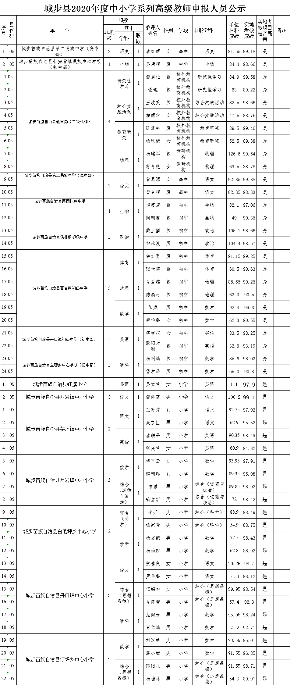 根据邵阳市教育职改办《关于做好2020年度全市中小学教师职称评审工作的通知》精神,我县各设岗单位共批复高级职数27个,申报人员50人。现将各申报人员公示如下。对申报人员的师德师风、任课情况、材料真伪等情况有异议的,请实名向县教育局职改办反映。对匿名反映情况的,不予受理。
