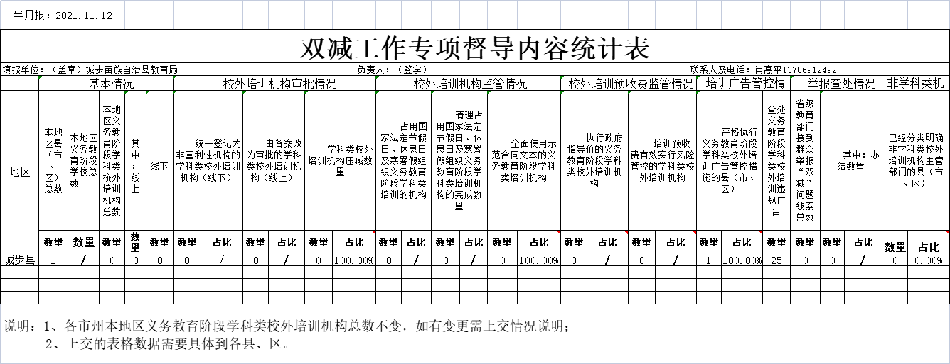 城步苗族自治县双减工作专项督导内容统计表公示2021-11-12半月报