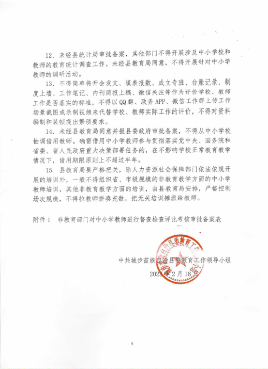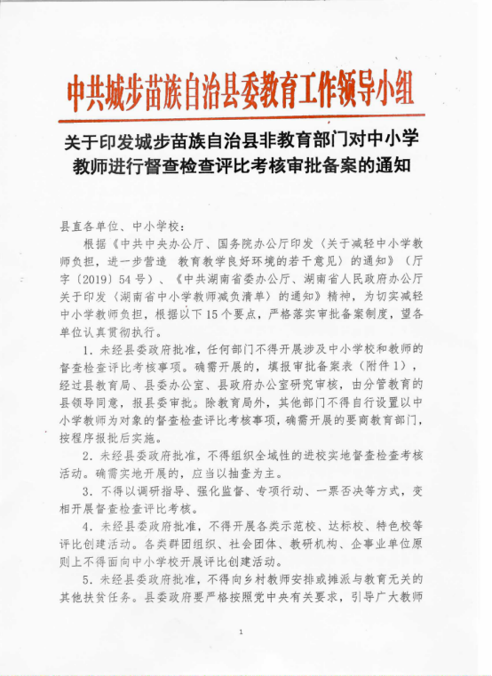 关于印发城步苗族自治县非教育部门对中小学教师进行督查评比考核审批备案的通知