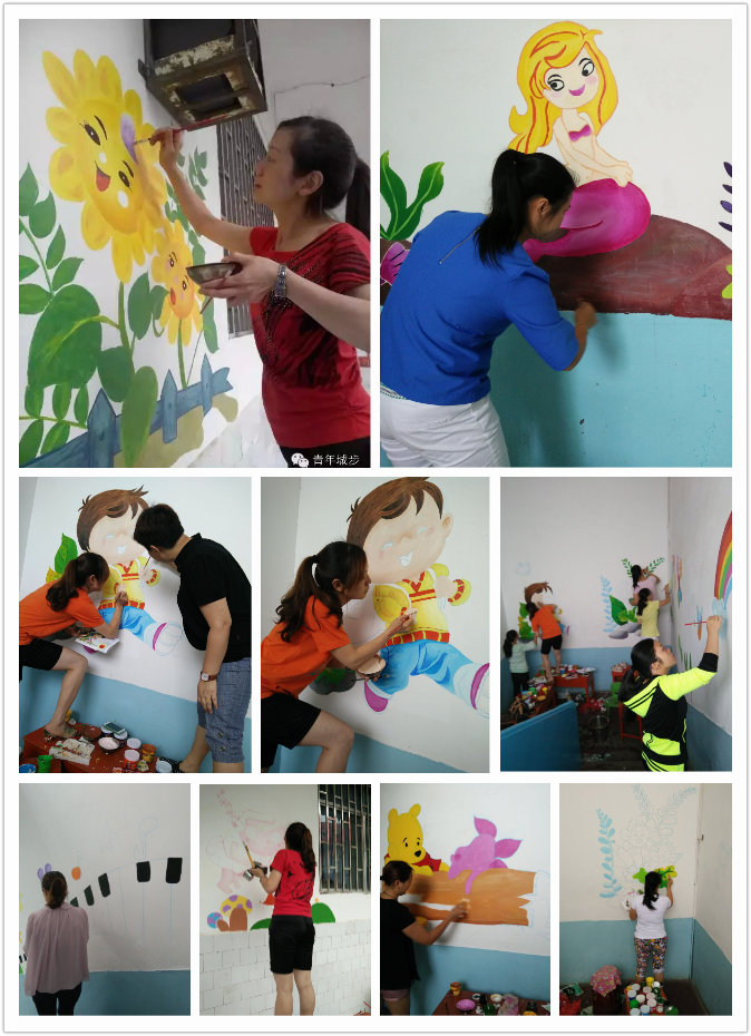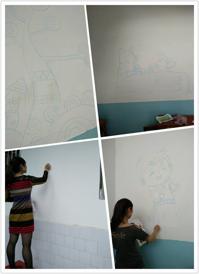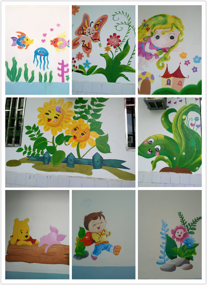 为了让孩子们拥有一个温馨快乐的学习环境,2015年6月份,在园长刘群辉的统筹安排、精心组织下,全体一线教师发扬了不怕苦不怕累的精神加班加点,对园舍的墙壁用画笔描绘出一幅幅可爱童趣的画面,成为孩子们入园后看到的第一道风景,吸引孩子们的眼球,让孩子们下学期来园就能感受到幼儿园新学期的新气象。