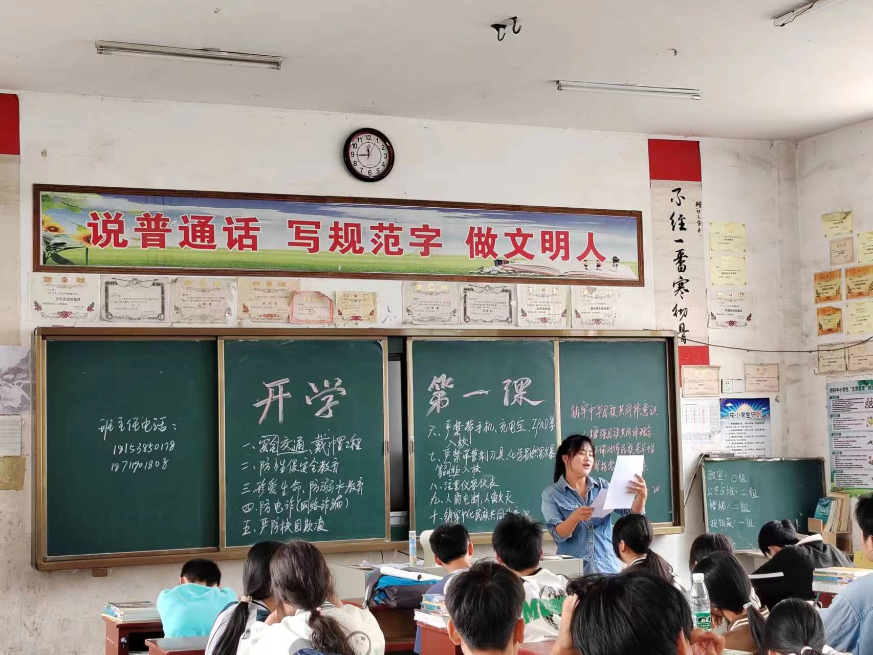 安全第一,开学第一课当然少不了对学生的安全教育!各班首先围绕“防溺水”、“防性侵”、“防电诈”和交通安全等方面对学生进行了严肃认真的安全宣讲,随后通过多种形式召开民族政策宣传主题班会。各班主任认真介绍我国是由56个民族共同组成的社会主义大家庭,我国的民族政策以及多民族和谐发展的民族关系。学生们也结合自身感受,挖掘书本中的素材,用朴实真挚的语言,讲述民族故事,饱满的情感、激昂的语调充分展现了新时代少年良好的精神面貌,体现出孩子们对民族团结的美好祝愿。