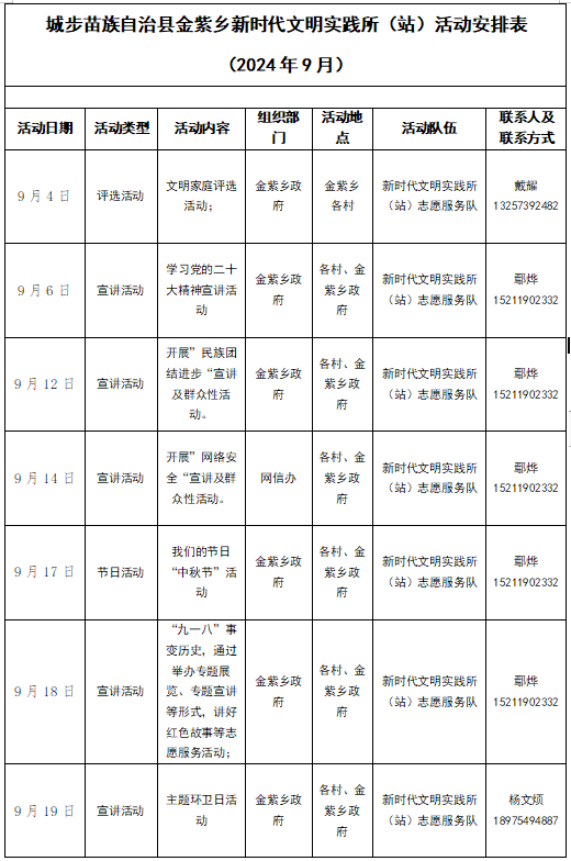 城步苗族自治县金紫乡新时代文明实践所(站)活动安排表(2024年9月)