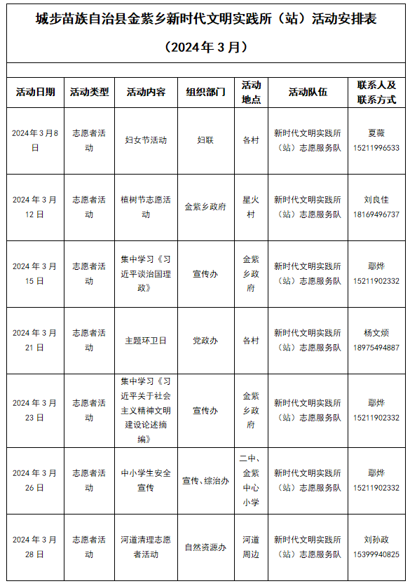 城步苗族自治县金紫乡新时代文明实践所(站)活动安排表(2024年3月)